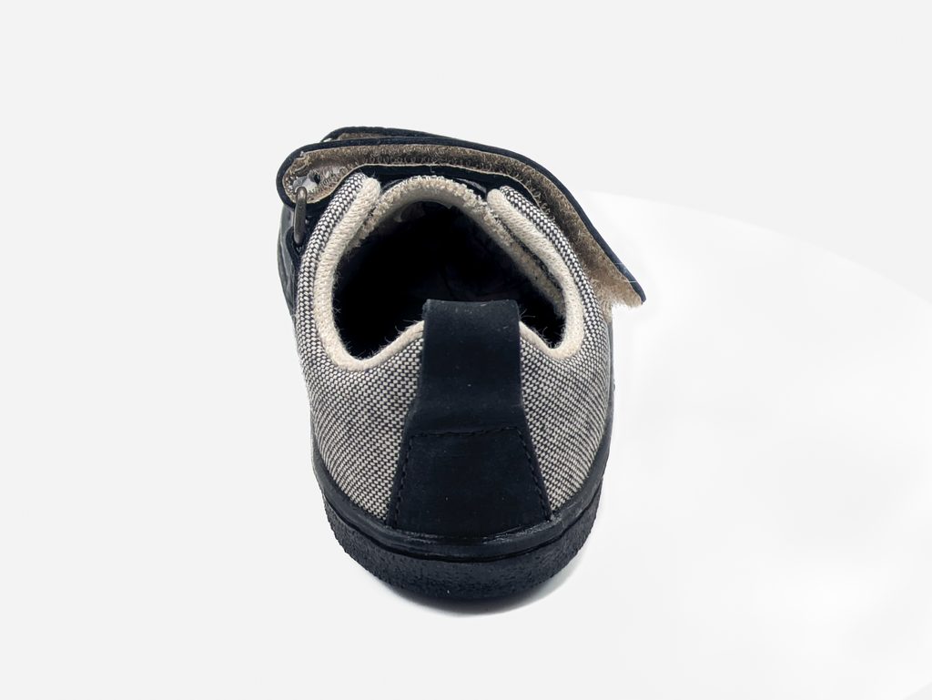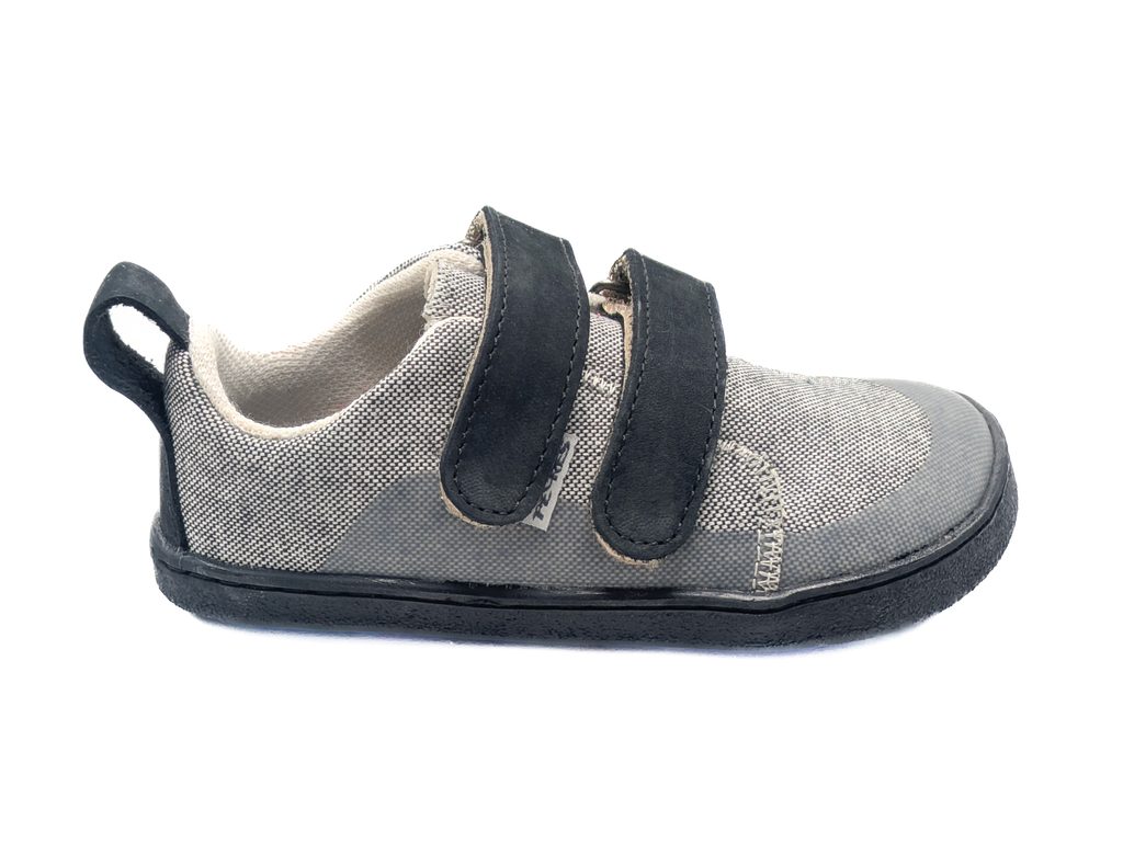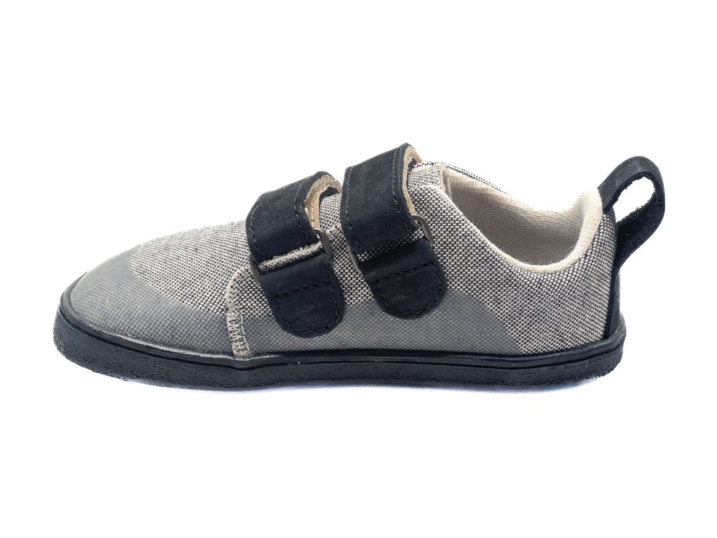 "The BF 57U model from the Barefoot collection are children's sneakers made from 100% certified recycled cotton with a cotton lining and removable insole. They feature a protective toe cap to prevent dirt and damage in high-wear areas. The Velcro fastening ensures easy wearing for children from toddlers to juniors. The flat cup rubber sole without drop is highly flexible and durable, suitable for wide toes and all types of arches."