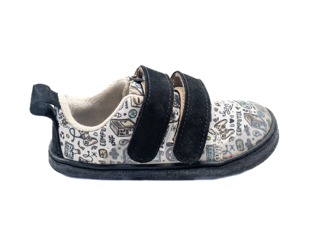 "The BF 57U model from the Barefoot collection are children's sneakers made from 100% certified recycled cotton with a cotton lining and removable insole. They feature a protective toe cap to prevent dirt and damage in high-wear areas. The Velcro fastening ensures easy wearing for children from toddlers to juniors. The flat cup rubber sole without drop is highly flexible and durable, suitable for wide toes and all types of arches."