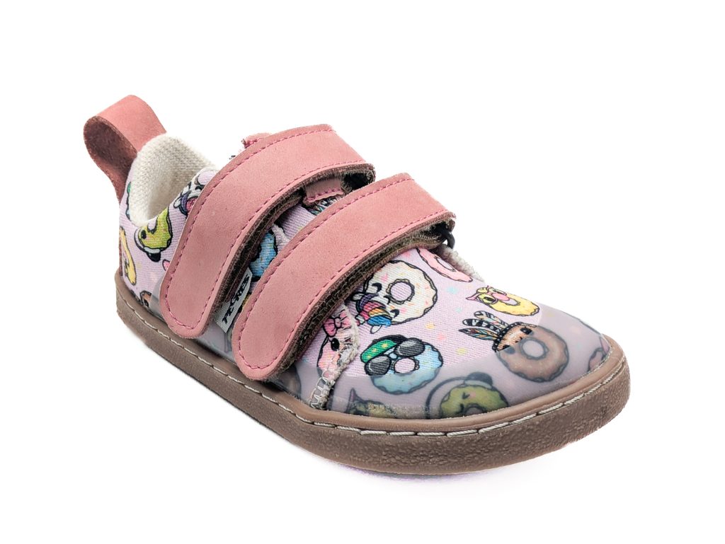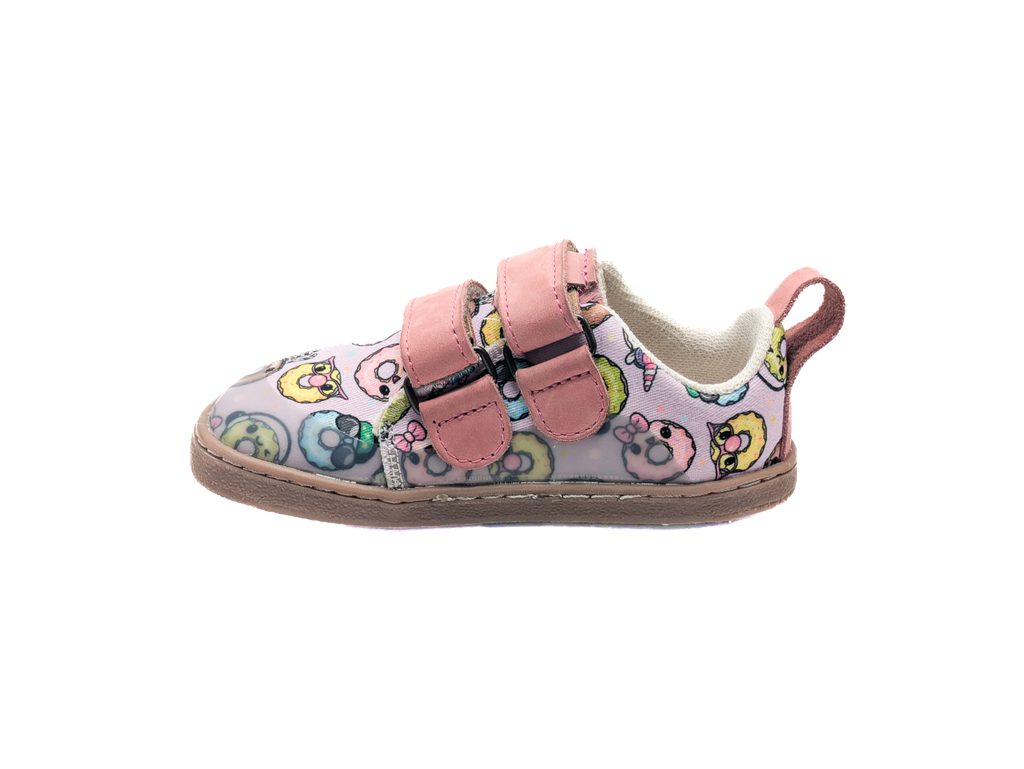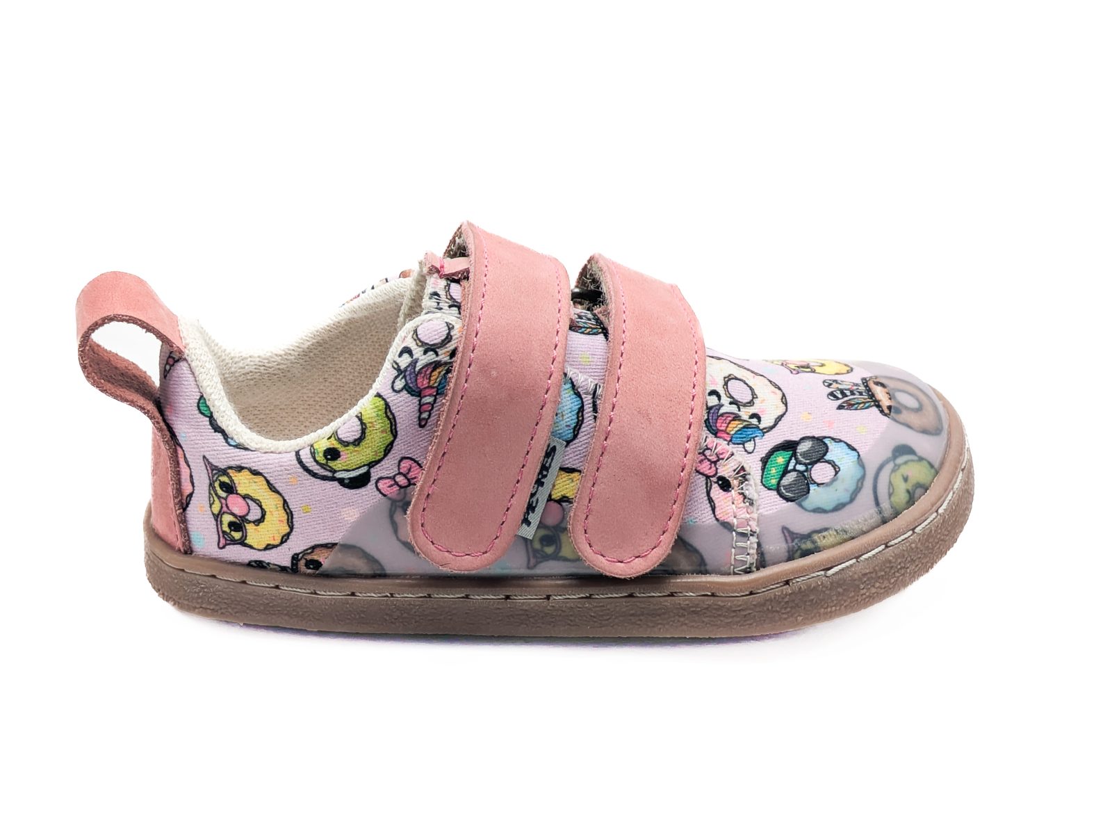 "The BF 57U model from the Barefoot collection are children's sneakers made from 100% certified recycled cotton with a cotton lining and removable insole. They feature a protective toe cap to prevent dirt and damage in high-wear areas. The Velcro fastening ensures easy wearing for children from toddlers to juniors. The flat cup rubber sole without drop is highly flexible and durable, suitable for wide toes and all types of arches."